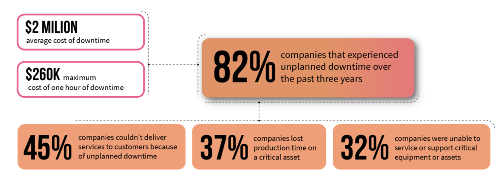 • 82% of companies have been impacted by at least one unplanned outage involving their machinery/assets over the past three years